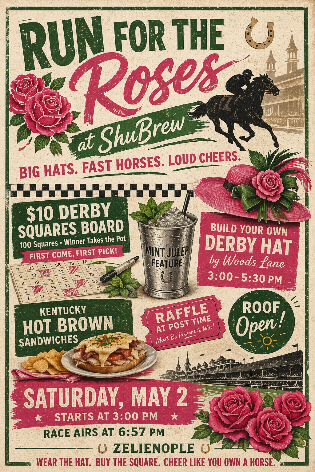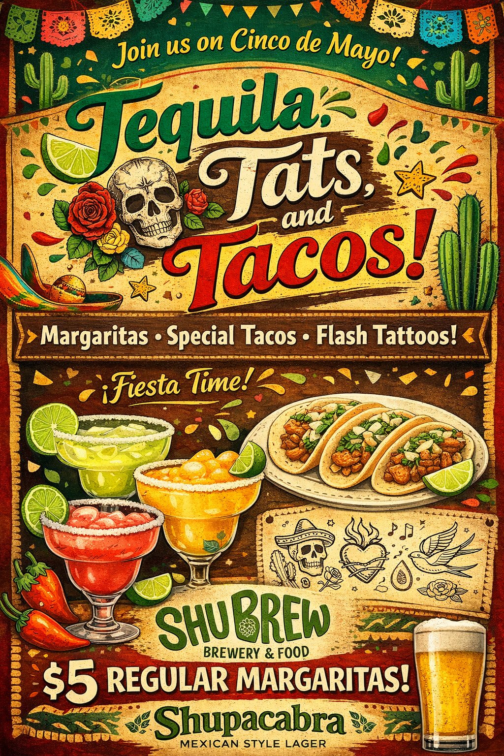 At ShuBrew Brewery and Food, we craft high-quality beers using carefully selected ingredients and time-honored brewing techniques. Our commitment to quality and flavor ensures each brew delivers a unique and satisfying experience for beer enthusiasts. Alongside our beers, we offer a curated menu designed to complement our brews, creating a perfect pairing for every palate. Check out our weekly and monthly hoppenings below.