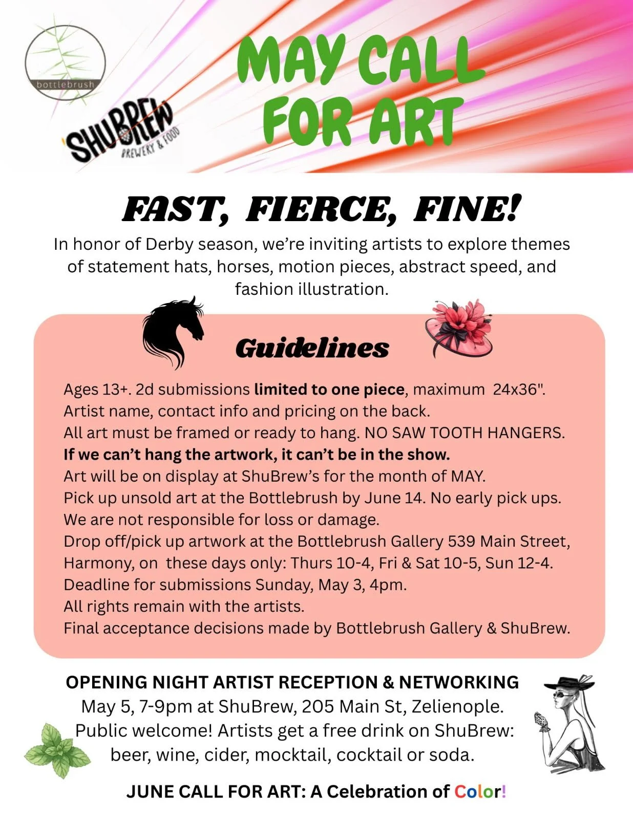 We want to get some more local art out into the world, will you help us? Every month we will be swapping out art on the walls in our dining room based on each month’s theme.
